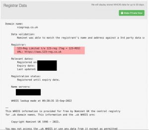 The Whois data will look like something similar to this. You will note the Registrar information I’ve highlighted for our domain.